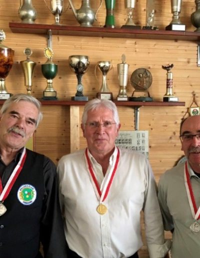 Celle-ci s’est jouée à Fribourg le 29 mai 2021. Excellent résultat pour Christian et Pascal, médaille d’or et argent. Jean-René est « chocolat » mais avec la satisfaction d’avoir la meilleure moyenne particulière et avec Christian la meilleure série.